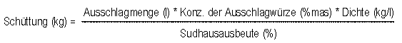 Die Ausschlagwürzekonzentration entspricht in etwa der vom Zollamt zur Berechnung der Biersteuer herangezogenen Stammwürze. Der Wert der Dichte kann Tabelle 1 entnommen werden. Die Sudhausausbeute beträgt in modernen Brauereien 75% und mehr. Solche Werte werden allerdings im Kleinversuch nicht erreicht. Es empfiehlt sich, mit maximal 70 % (evtl. noch weniger) zu rechnen.