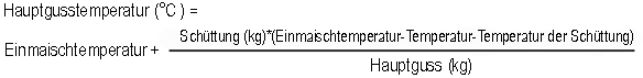 In den Brauereien hat man Reserven mit warmem bzw. heißem Wasser, das man aus energetischen Gründen zum Einmaischen nimmt. Wenn die Einmaischtemperatur gewählt ist und die Schrottemperatur bekannt ist, kann man mittels Mischungsformel (unter Vernachlässigung der spezifischen Wärmen von Schrot und Wasser) die notwendige Hauptgusstemperatur berechnen: